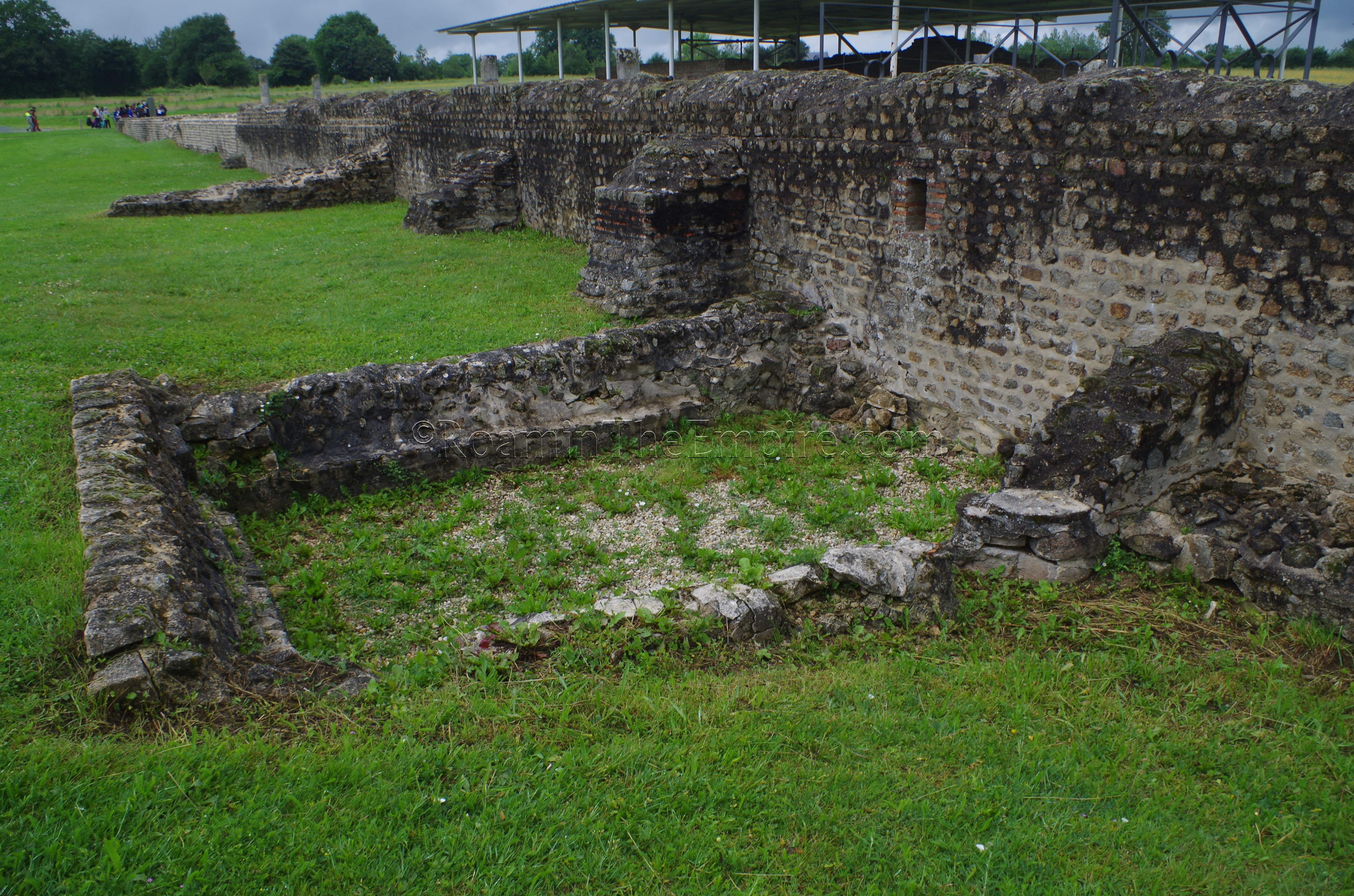Adjacent to the museum, and accessed through the museum, is the so-called “fortress” of Jublains. The layout of this fortress-like complex is reminiscent of later defensive structures, likely earning it the moniker, but in reality does not seem to have initially been used with an overtly military function, and is apparently unique in the Roman world. This construction consists of a fortified central structure with towers, surrounded by earthen defensive works, in turn surrounded by another set of stone walls with towers. Those three primary features seem to have been constructed in stages over the course of the 3rd century CE, with the central building being constructed about 200 CE, and the earthen defensive wall and outer stone wall coming in 290 CE and 295 CE, respectively. The central building is theorized to be some sort of storehouse, though what exactly it housed is unknown. The position of Noviodunum at the crossroads of trade routes could have meant any number of goods were stored there. The location, outside of the town, and the expense that likely would have went into the construction have led to the theory that it was an imperial property, rather than local.  The additional defensive measures constructed around the storehouse were likely the result of the Germanic invasions of the second half of the 3rd century CE. It is possible that at this point, the complex may have been used to serve some military function.