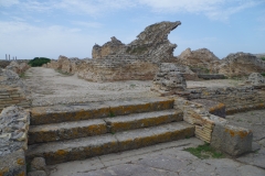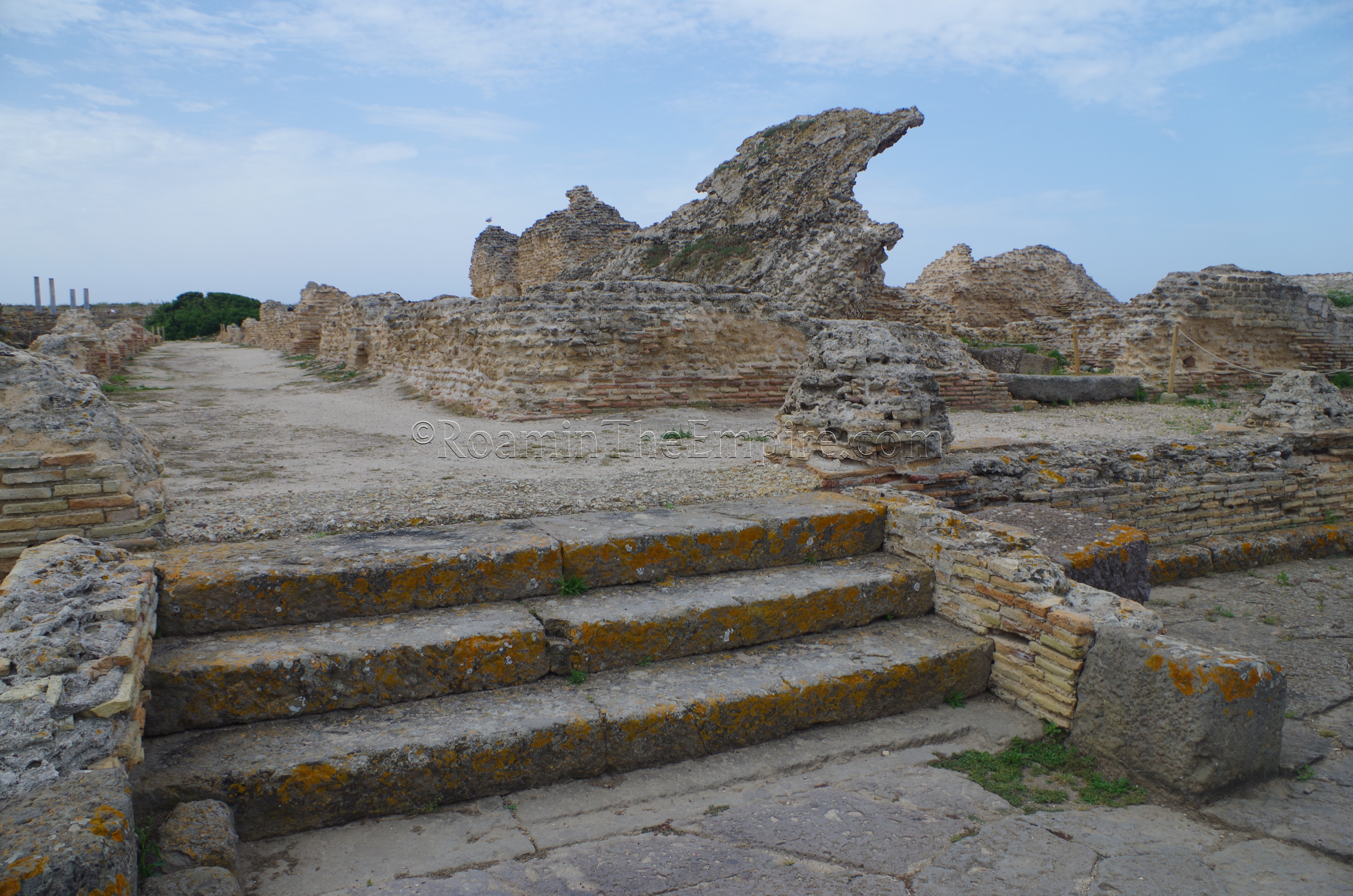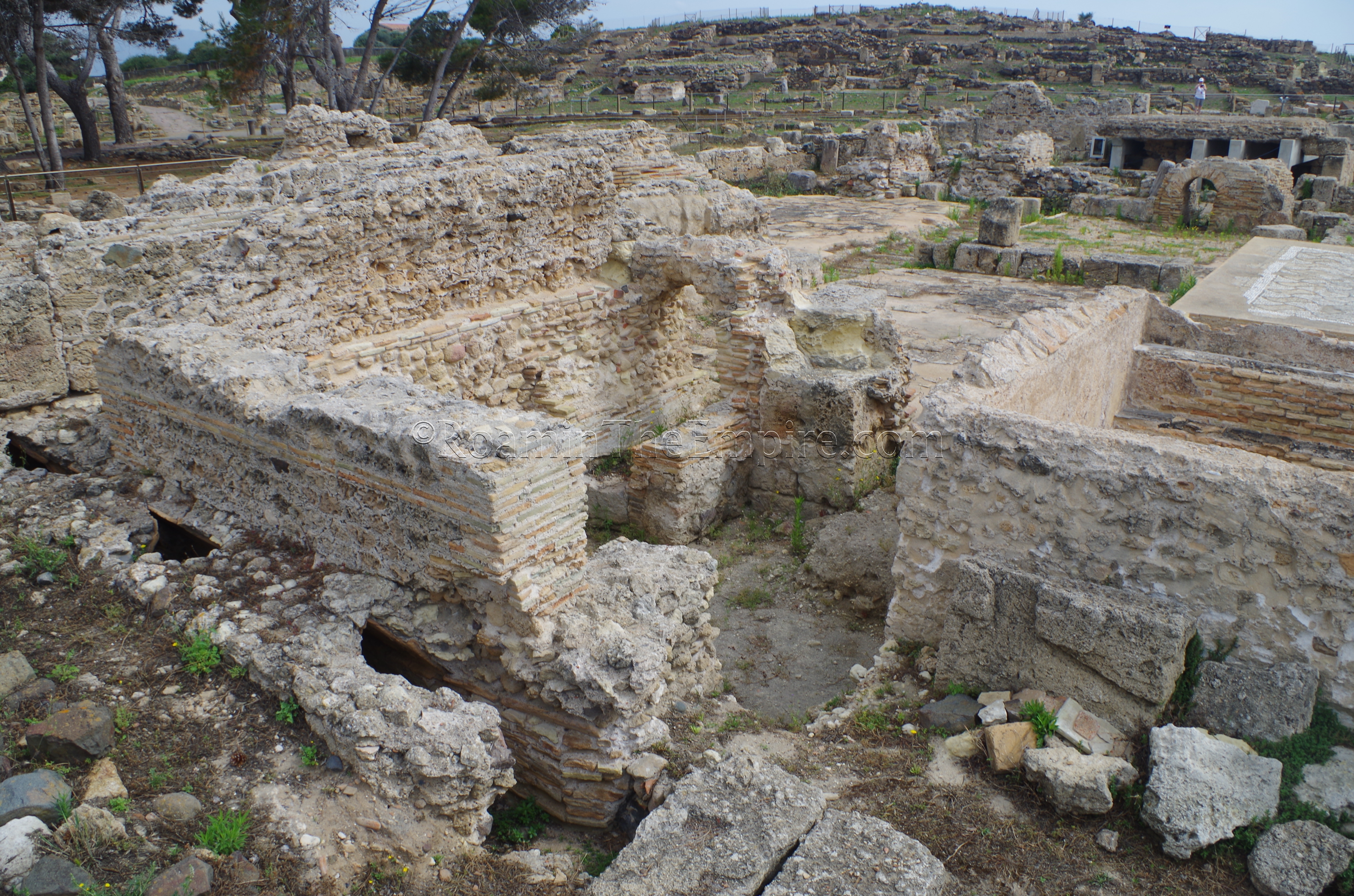 The insula to the east, heading back toward the theater is dubbed the ‘Kasbah’. This area, on the slope of the so-called Tanit Hill, is a residential district and the name comes from the use of Punic construction techniques in some of the houses located here. The construction in the Kasbah dates from many different periods, but the earliest seems to be from the Republican period; perhaps not long after the Roman occupation of the city. One of the most recognizable structures of this area is a fountain a small distance from the road, near the middle of the insula.