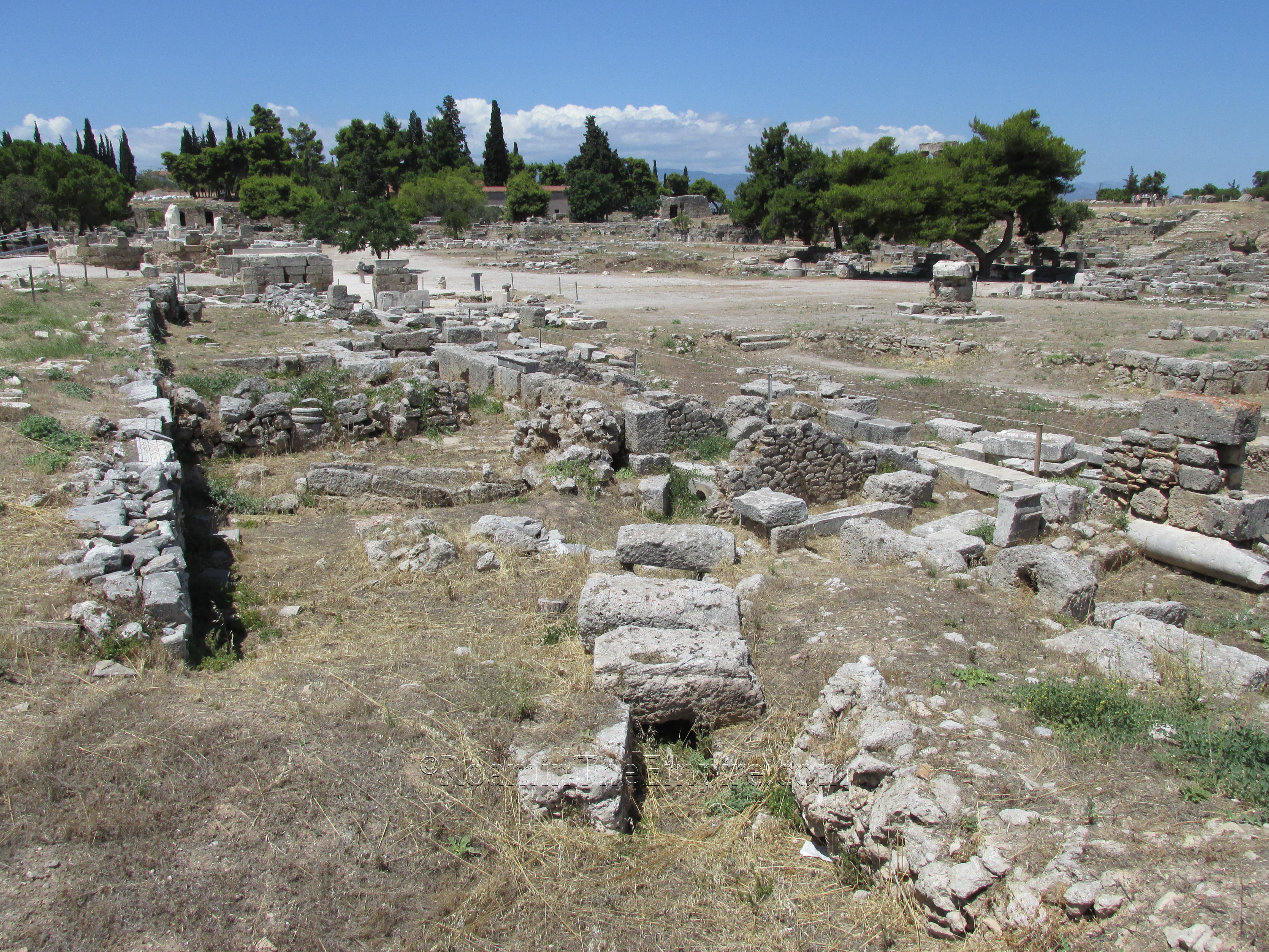 Bordering the southern edge of the forum is the porticoed South Stoa. The South Stoa was originally constructed during the Greek period of the city, around the end of the 4th century or early 3rd century BCE. Apparently some of this stoa survived the Roman destruction and during the reign of Augustus was altered considerably to convert the shop stalls of the original stoa into public and administrative spaces. Not all of the spaces have been identified, but on the west side there is a latrine and bathing complex, which, aren’t especially identifiable. The latrines seem to be mostly unexcavated and the baths are mostly blocked by a high wall facing the forum and the inability to get very close to the entrance to see in. Both date to the 5th century CE.