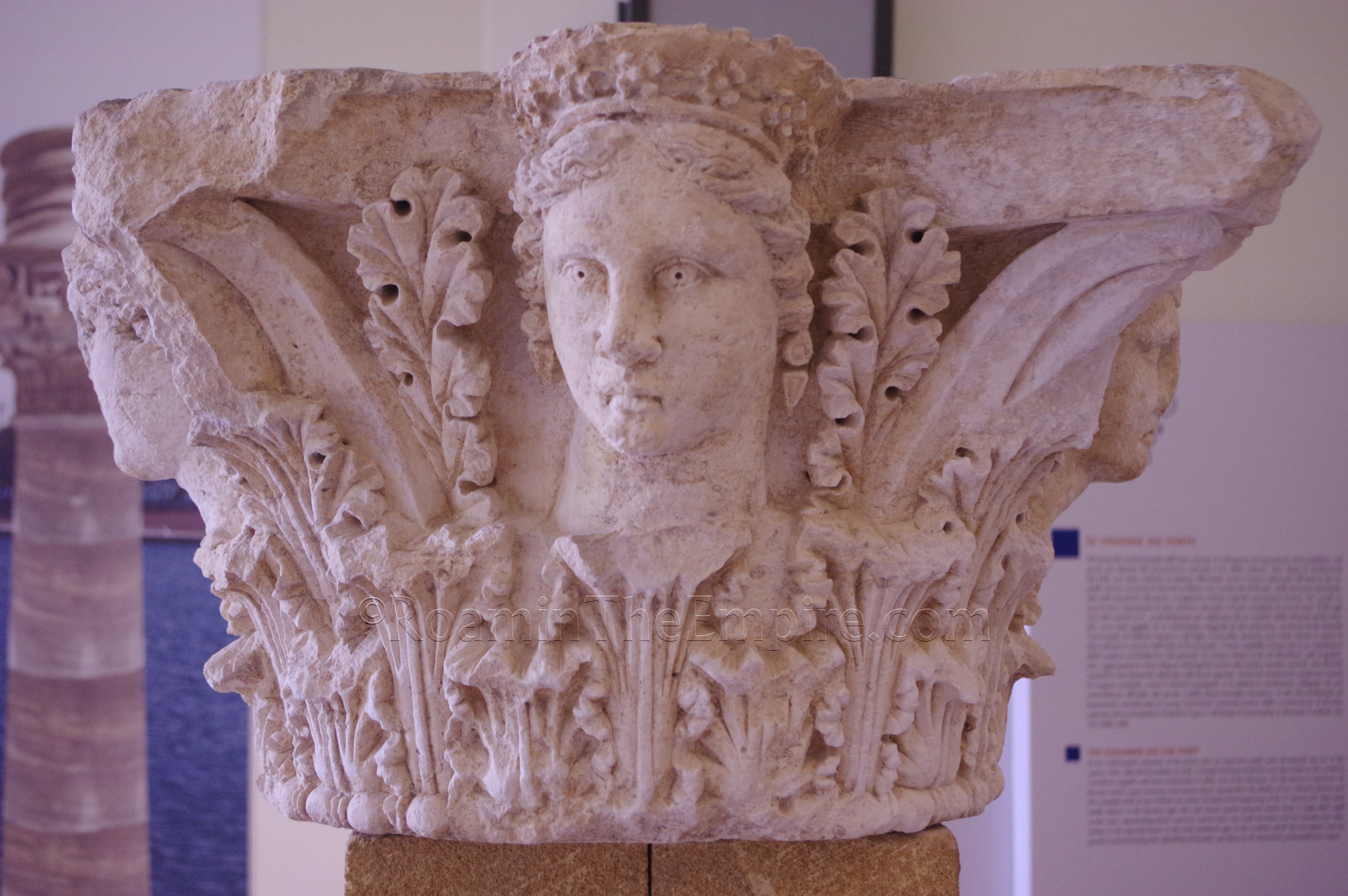Just across the Piazza Sottile de Falco (which contains some later medieval remains) to the east is the Palazzo Granafei-Nervenga. This building is open every day from 8:00 to 20:30 and is free. Within this building is the Sala della Colonna, a room which contains one of the column capitals from the two columns that marked the end of the Via Appia near the harbor. The capital dates to the 2nd or 3rd century CE and is decorated with images of telamons and Jupiter, Neptune, Minerva, and Juno. Some remains of a Roman domus dating to the 1st-2nd century CE was also found on the grounds of the palace during renovations in 2000-2001 and is on display in a few of the adjacent rooms. Part of the domus with some nice mosaic checkerboard remaining was located in an inaccessible courtyard (but visible through the window). Two other rooms have accessible remains of the domus as well as medieval burials. There’s some information on both the columns and domus on site, but almost all of it is in Italian.