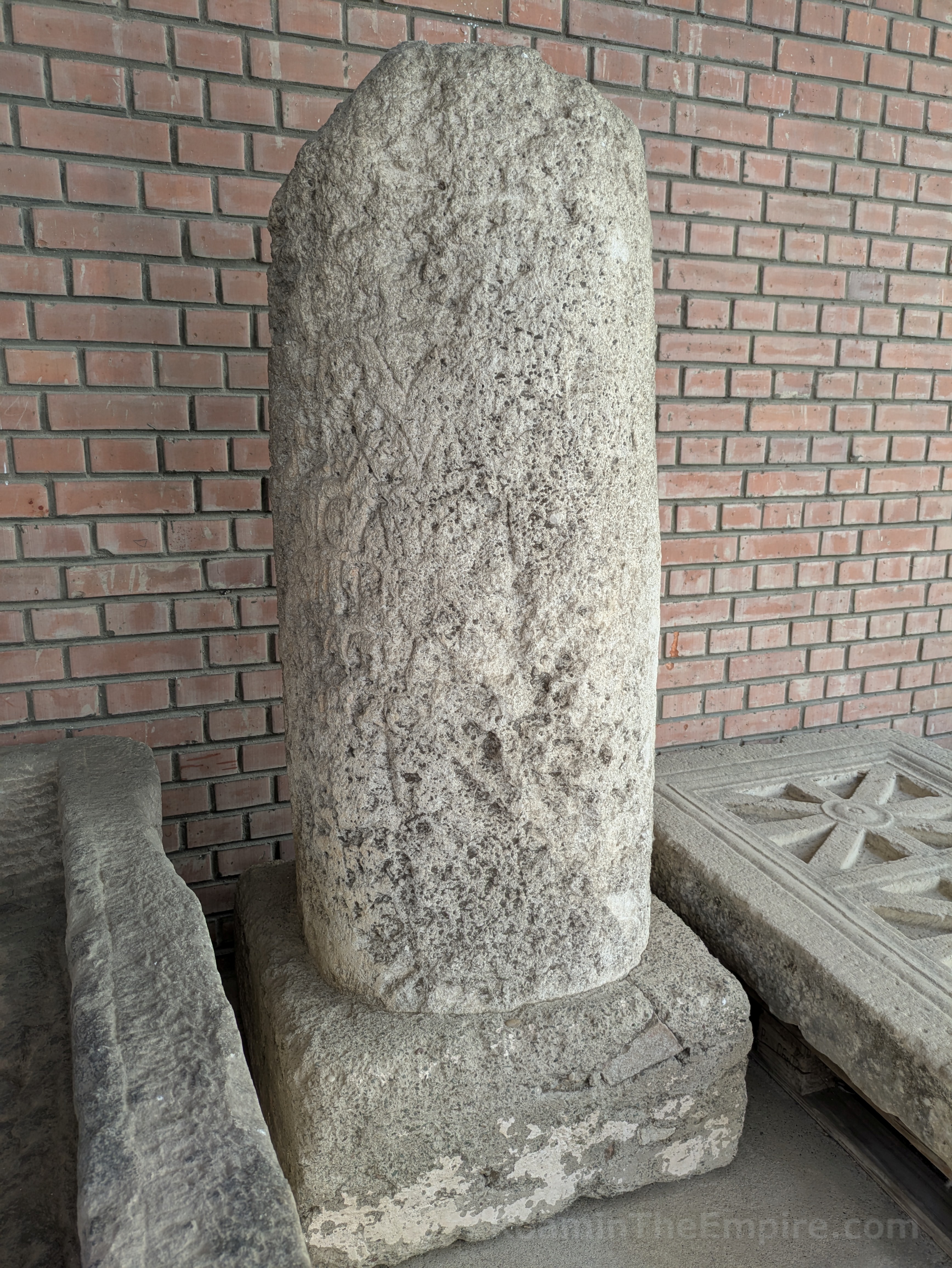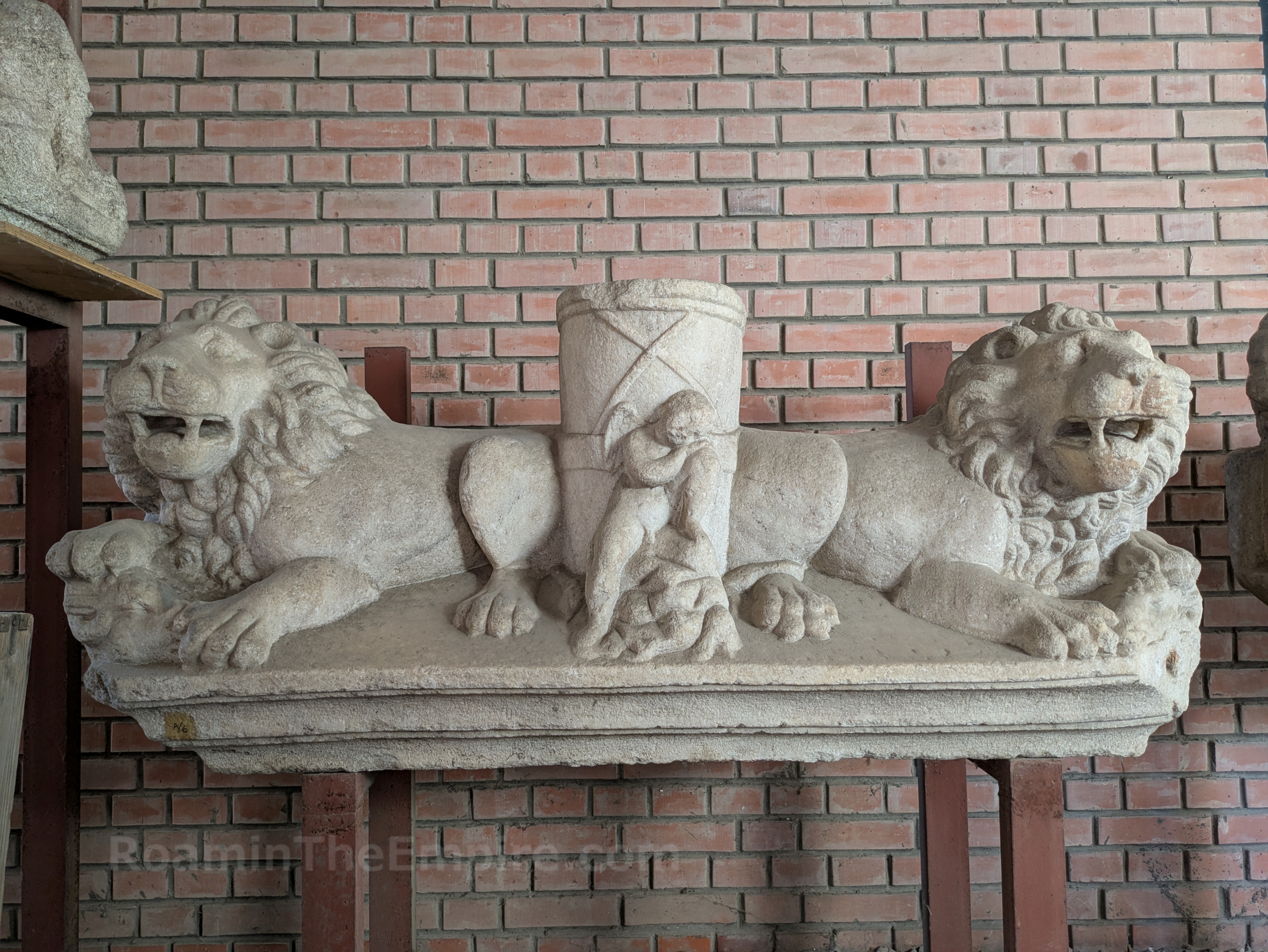 Back towards the imperial palace of Sirmium, across the intersection to the northwest, located at Vuka Karadžića 3 is the Muzej Srema, the city museum. The museum is open Monday through Friday from 8:00 to 15:00 and Saturday and Sunday from 9;00 to 17:00. Admission is 300 RSD, which includes the separate lapidarium. In front of the museum (to the east) are the reconstructions of some excavations found here. None of it seems to be original, just modern materials outlining the footprint of the walls. This area was also part of the imperial palace. The most distinctive of what was found here is a 16 sided building with 8 internal columns in the eastern part of the plot. The finding of lead seals and porphyry statue fragments has lead to the supposition that it may have been a building used for official document storage.