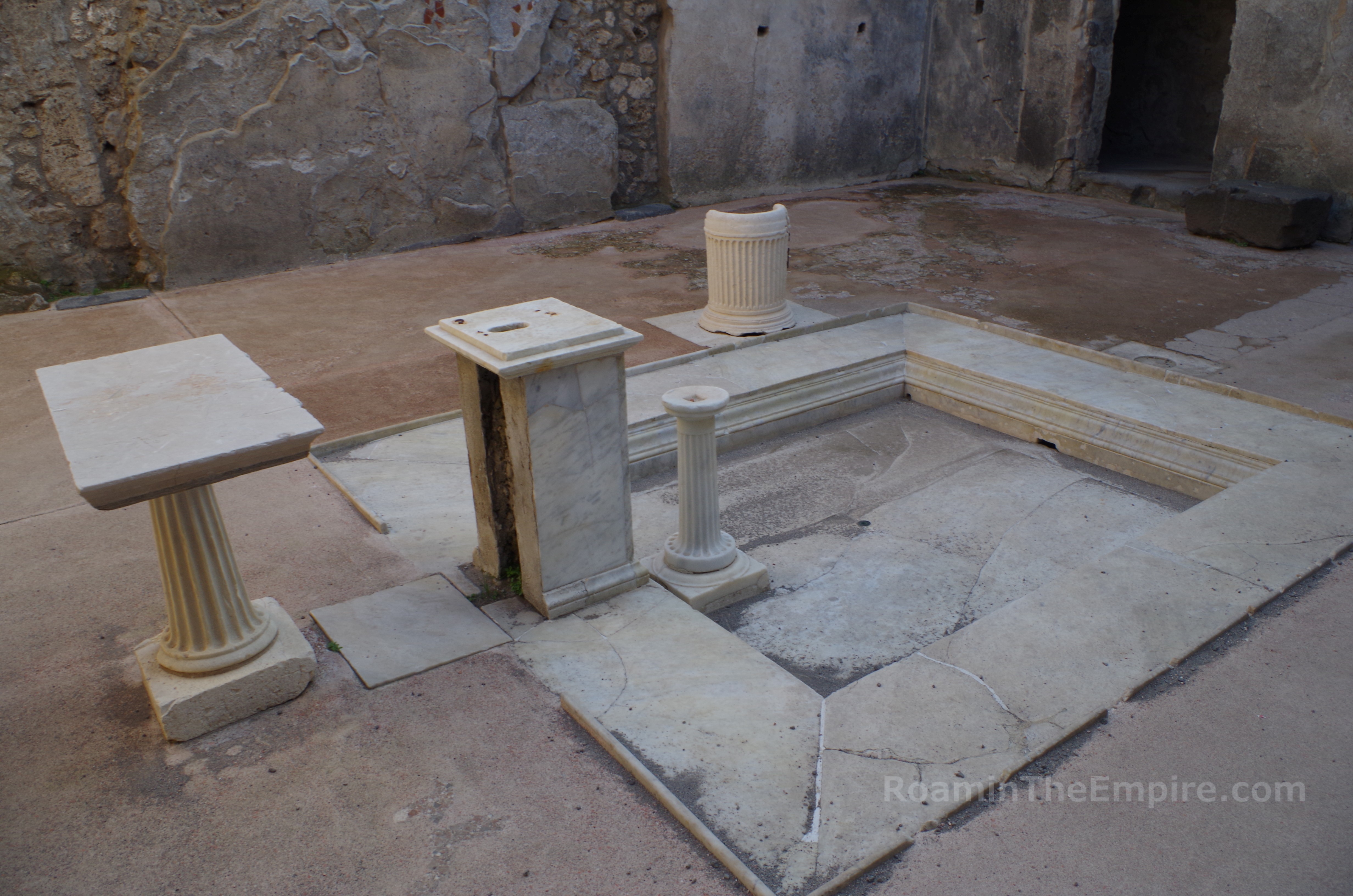There were several different types of atria based on the details of the design. While they all mostly functioned the same way, some styles would have been decorated with columns. The atrium, often being the first main room inside the house from the entrance, would also serve as a reception area, and so like other rooms of the house used for hosting guests (such as the tablinum or triclinium) would have been richly decorated so as to project the wealth and taste of the owner.