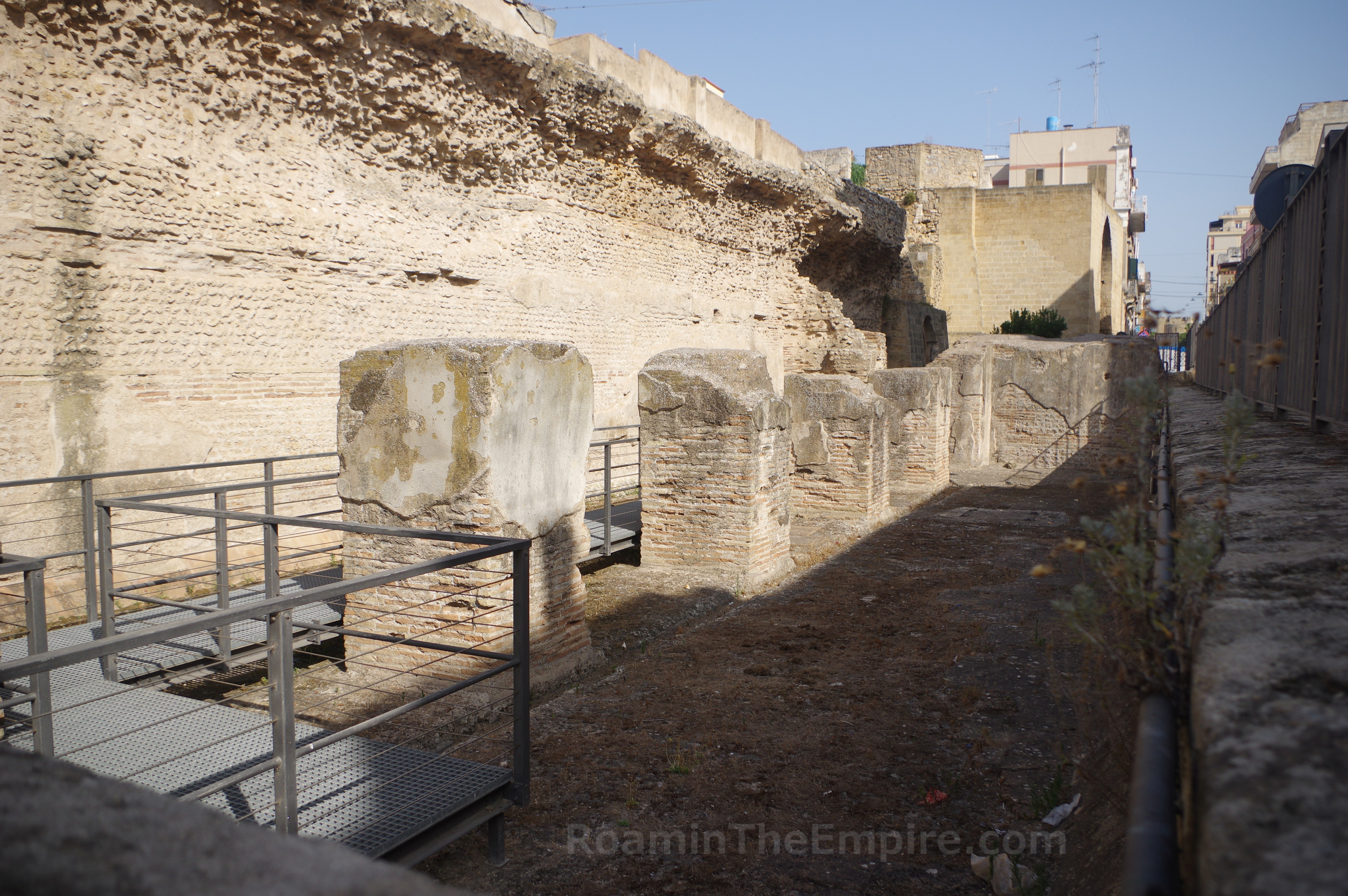 The castellum aquae (plural: castella aquae) were reservoir tanks located at the terminus of a Roman aqueduct. The name literally means ‘water fortress’ in Latin. The castellum acquae served a purpose beyond simply acting as a water reservoir at a terminal point of an aqueduct branch. With the water pressure created by the running water of an aqueduct, it was also necessary to slow the water and reduce the force generated by the water before it was dispersed into smaller pipes and channels to be used in the water network of the aqueduct destination. This helped to reduce the chance of damage to the pipes from the force of the water. Perhaps the most famous example of an intact castellum aquae is at Pompeii, though other examples have been found, such as at Nemausus (modern Nîmes). Also sometimes called the castellum divisiorum.